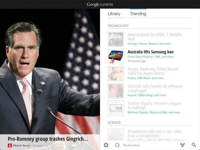 To get started with the new Google Currents, users just need to download the application and choose the magazine/newspaper they want to subscriptions to for free. The app also features RSS, video and photo feeds, Google+ streams and Google Reader subscriptions.